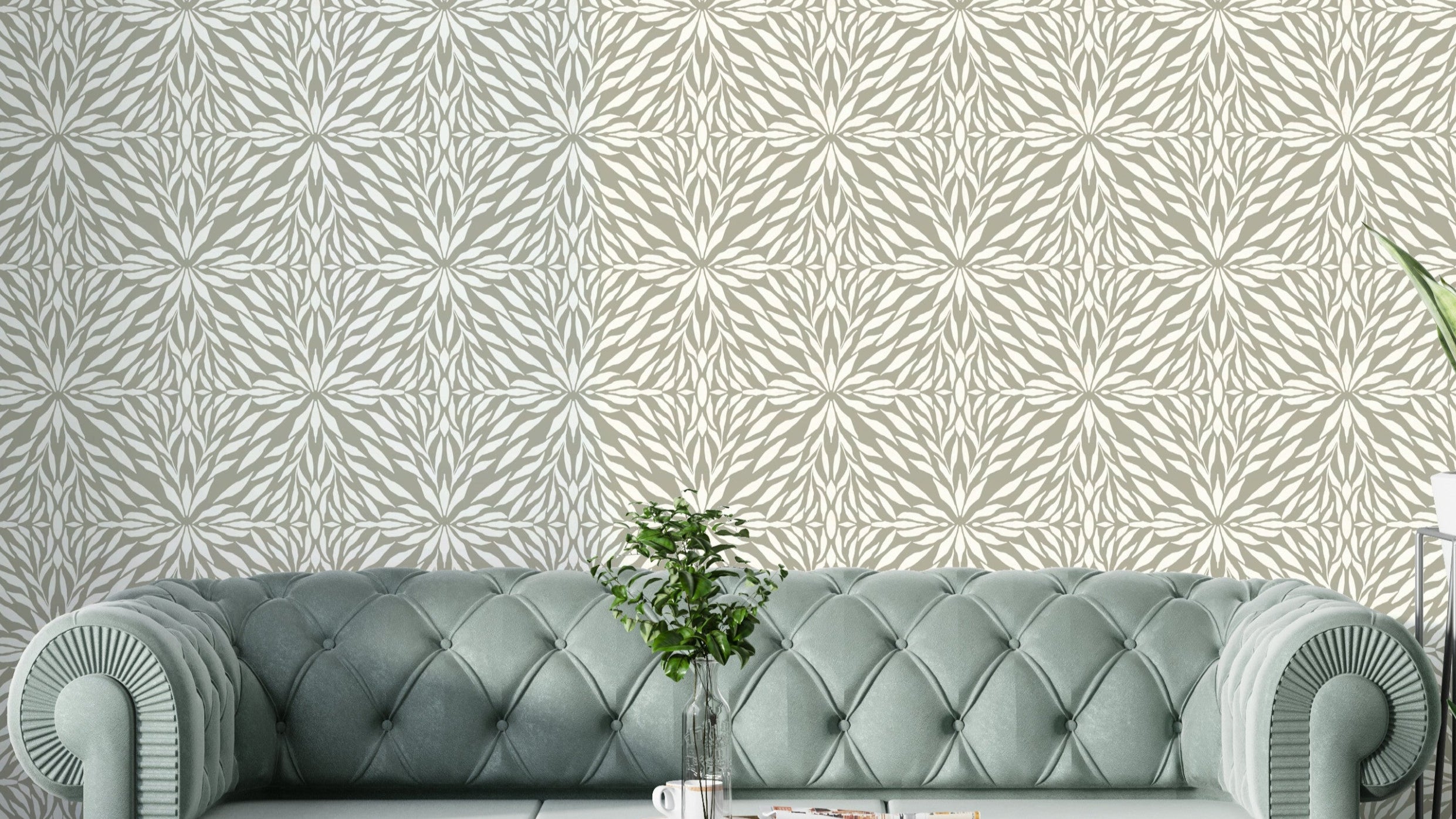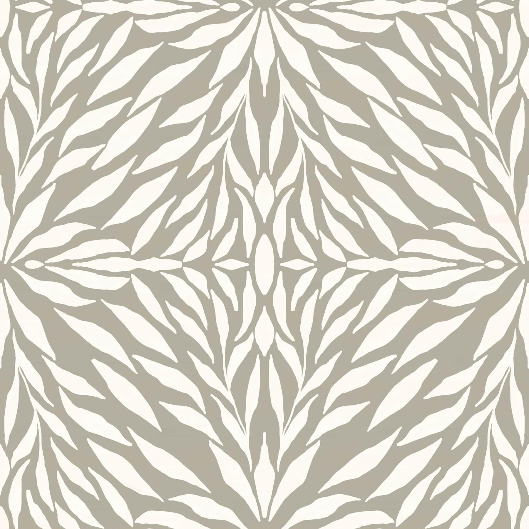 This wallpaper boasts a captivating design of symmetrical leaf patterns in a harmonious blend of beige and off-white. The subtle color palette creates a calming atmosphere while the intricate pattern adds visual interest without overwhelming the space. Suitable for various rooms, it offers a sophisticated and understated elegance, perfectly complementing modern, minimalist, and Scandinavian design aesthetics. The seamless repeat ensures a cohesive look across any surface.