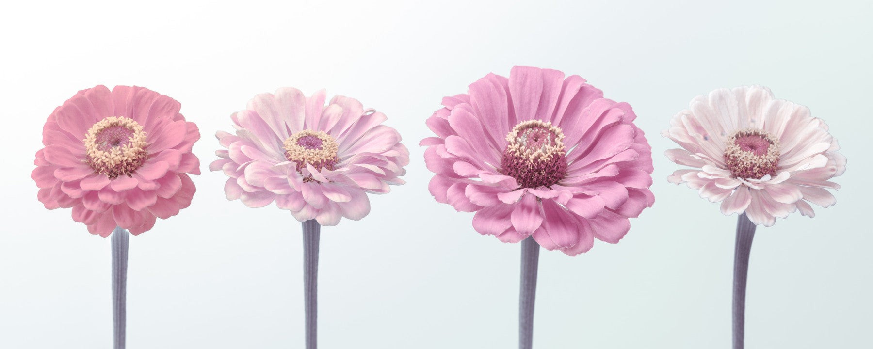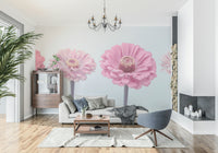 Elevate your interior with the subtle beauty of this floral wallpaper for walls. The design features four Zinnia blooms in gradient shades of pink. The wallpaper creates a dreamy, soft aesthetic. The light colour palette pairs well with many styles and is suited to calm environments. This pattern enhances bedrooms, powder rooms, hallways, or living areas, providing a sophisticated yet simple backdrop. Add this Zinnia flower wallpaper to create a light and airy interior design.